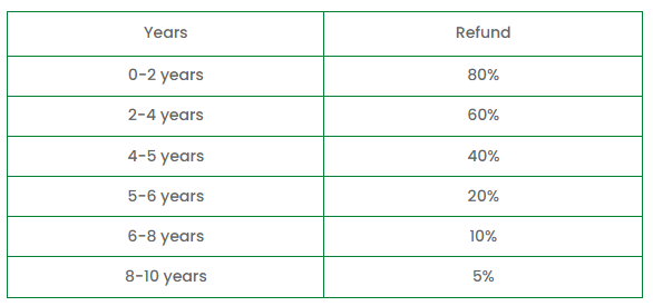 Prorated Refund Schedule